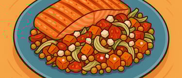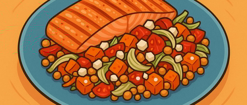 Plate Salmon with the veggies and sprinkle feta on top before serving.